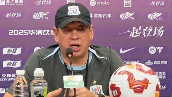 北京时间8月15日,上海申花客场对阵浙江队赛前,申花主帅斯卢茨基携球员高天意出席了发布会。