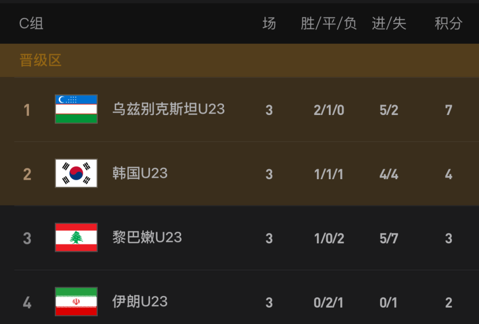 北京时间1月13日,U23亚洲杯C组小组赛落下帷幕。乌兹别克斯坦以2-0击败韩国,两队携手出线,黎巴嫩队则以1-0击败伊朗队,两队双双出局。