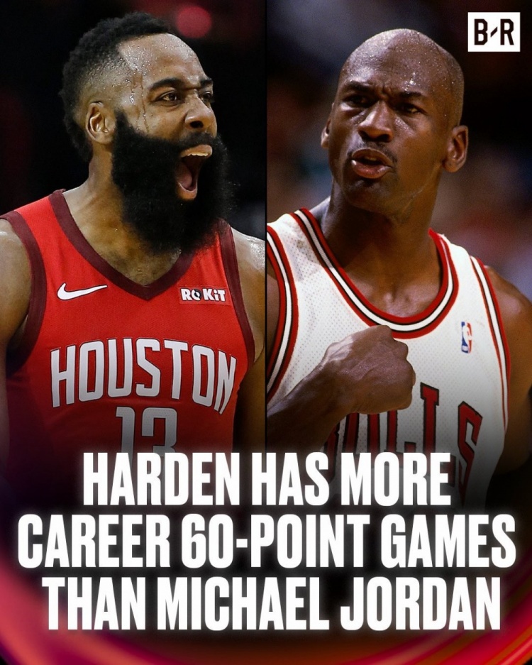 虽显示哈登60+场次多于乔丹,但实际两人均为4场